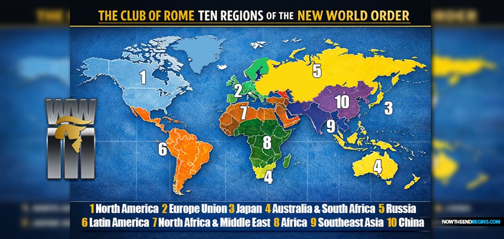 En 1974, le Club de Rome, un influent groupe de réflexion composé de scientifiques, d’économistes et de dirigeants internationaux, a proposé un cadre géopolitique controversé divisant le monde en dix blocs régionaux, souvent appelés les «Dix Royaumes». Cette division était présentée comme faisant partie d’un effort plus vaste visant à relever les défis mondiaux croissants tels que la surpopulation, l’épuisement des ressources, l’instabilité économique et la dégradation de l’environnement. Aujourd’hui, ce travail est perçu comme le plan d’un Nouvel Ordre Mondial imminent, un gouvernement mondial centralisé et autoritaire annoncé par les prophéties bibliques. Quel est le rapport avec l’Agenda 2030 de l’ONU et les accaparements de territoires de Trump ? Il est important, comme vous le verrez bientôt.